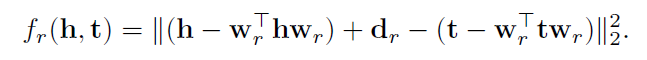 """f_r(h,t) = |(h-whw)+d_r-(t-wtw)|, w_r,d_r is orthogonal."""