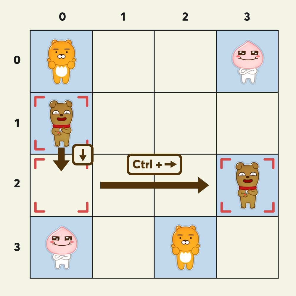 [Ctrl]+↑ 이동, [Enter] 입력, [Ctrl]+← 이동, [Ctrl]+↓ 이동, [Enter] 입력 = 키 조작 5회