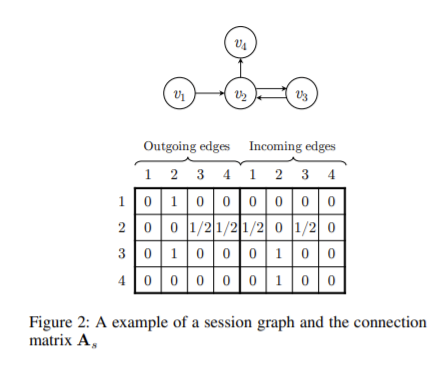 v1 -> v2 -> v3 -> v2 -> v4의 session이 존재할때 그래프는 위의 노드와 간선 연결이 보인다.