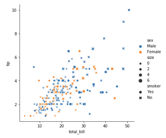 # hue(명목형) : 해당 변수를 기준으로 색깔 다르게 표시