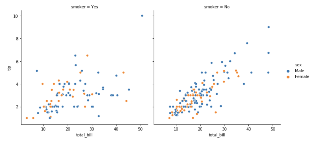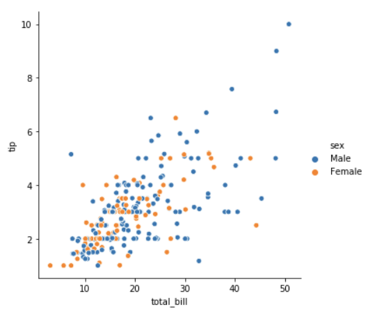 # hue(명목형) : 해당 변수를 기준으로 색깔 다르게 표시