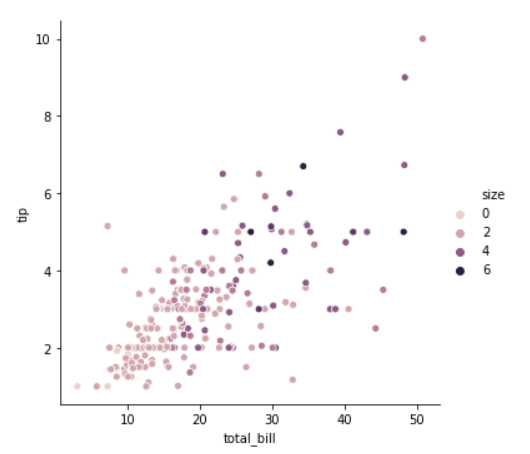 # hue(실수형) : 해당 변수를 기준으로 색깔 그라데이션으로 표시