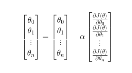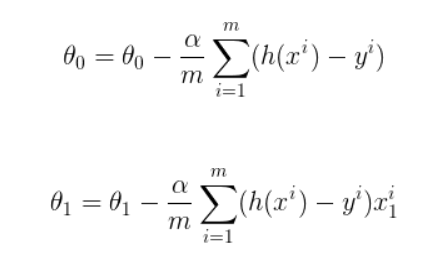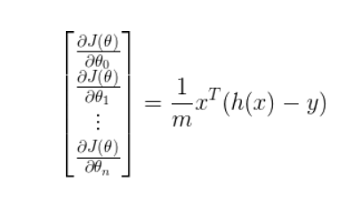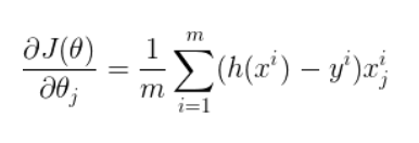 비용함수를 각 세타에 대해서 편미분을 진행한 결과는 다음과 같다.