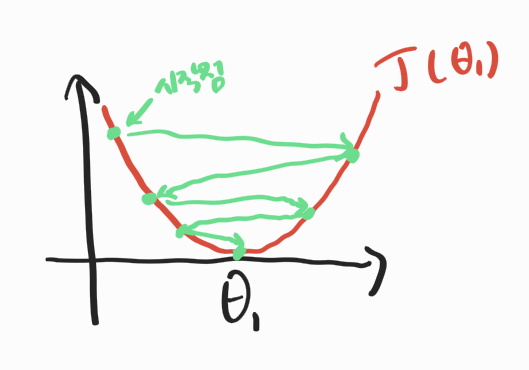 learning rate를 잘 설정해줘야 하는 이유를 아래 그림을 통해서 보시면 알 수 있습니다.
