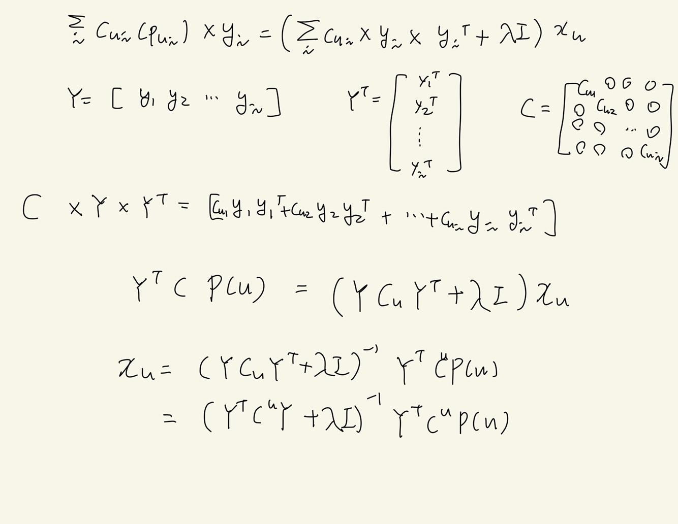 x_u는 user-latent matrix이고 y_i는 item-latent matrix이다. 뒤에 regularization term도 과적합 방지를 위해서 넣어주었다. user-item matrix같은 경우는 sparse하기 때문에 m(유저의 수) x n(아이템의 수)를 곱하게 되면 숫자가 어마어마하게 커진다. 그러기 때문에 SGD같은 방식으로 값을 update하기에 적절한 기법이아니다.