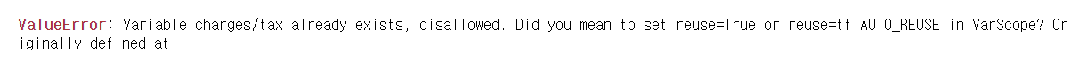 그래서 뒤에 또 친절하게 reuse=True를 사용하거나 tf.AUTO_REUSE를 varscope로 선언할때 적으시겠냐고 물어보네요